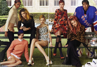 Steven Meisel photographed Eliza Cummings, Jourdan Dunn, Mirte Maas, Daria Strokous for the September 2010 issue of American Vogue in NY on June 7-10, 2010 with stylist Edward Enninful.